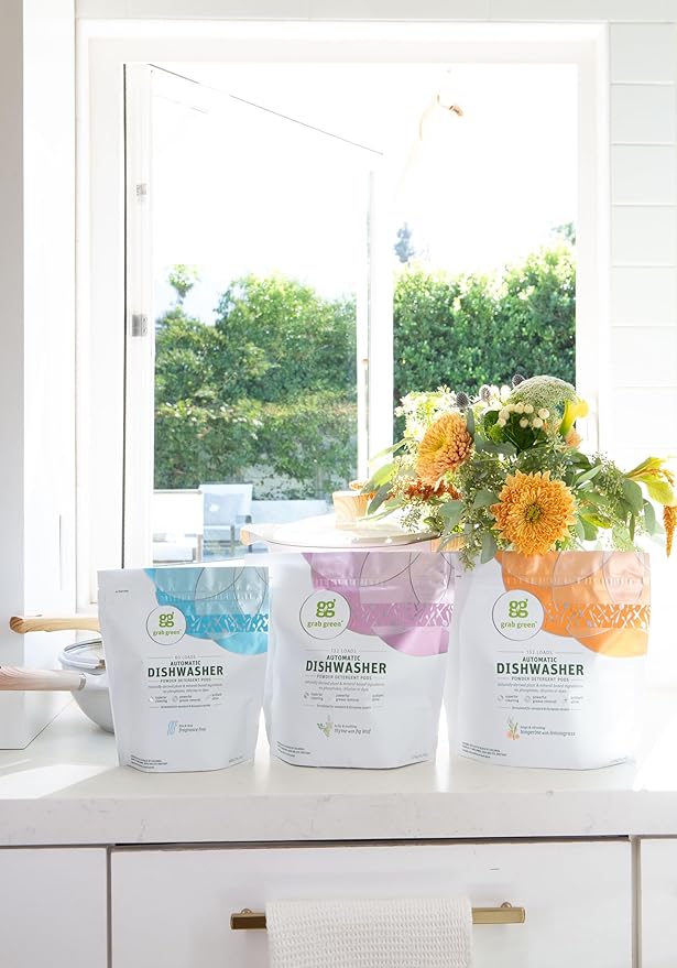 Grab Green Automatic Dishwashing Detergent Pods, 132 Count, Tangerine Lemongrass Scent, Plant and Mineral Based, Superior Cleaning, Powerful Grease Removal, Brilliant Shine
