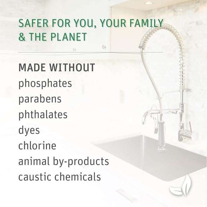 - No Harsh Chemicals: Our kitchen solutions are septic safe and made from naturally derived plant and mineral based ingredients to ensure the best cleaning products with no phosphates, phthalates, chlorine, toxins, dyes or masking agents