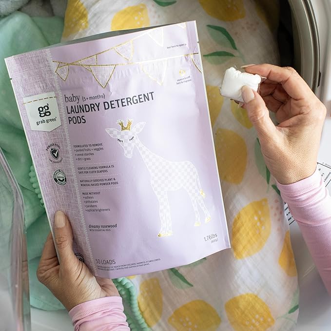 Grab Green Baby Laundry Detergent Pods, 50 Count, Dreamy Rosewood, Plant and Mineral Based, Formulated to Tackle Growing Baby (5 Months and Older) Laundry Stains