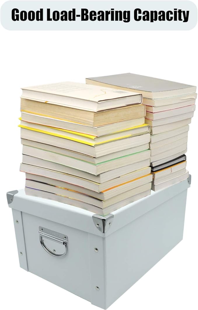 GUOZI Collapsible Storage Box, Decorative Memory Box with Lid & Metal Reinforced Corners, Cardboard File Bin with Handles, Organizer Gift Box for Keepsake Toy Photos Office Nursery Wardrobe Bookshelf