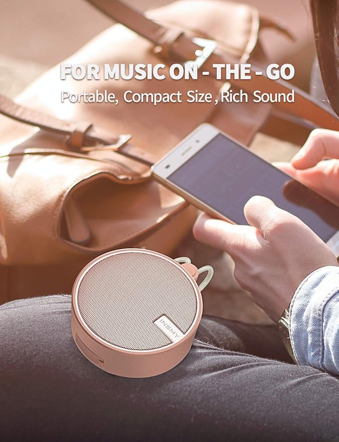 - 【MORE BASS LESS SPACE BIG SOUND】 This INSMY wireless speaker is built with an active deliver and extra passive radiator in this compact small size, delivering immersive and stereophonic audio for you from the beach to the bathroom. It's really loud, pure, musical, and dynamic. The small portable speaker impresses with a loud and clear sound performance even under showering noise.
