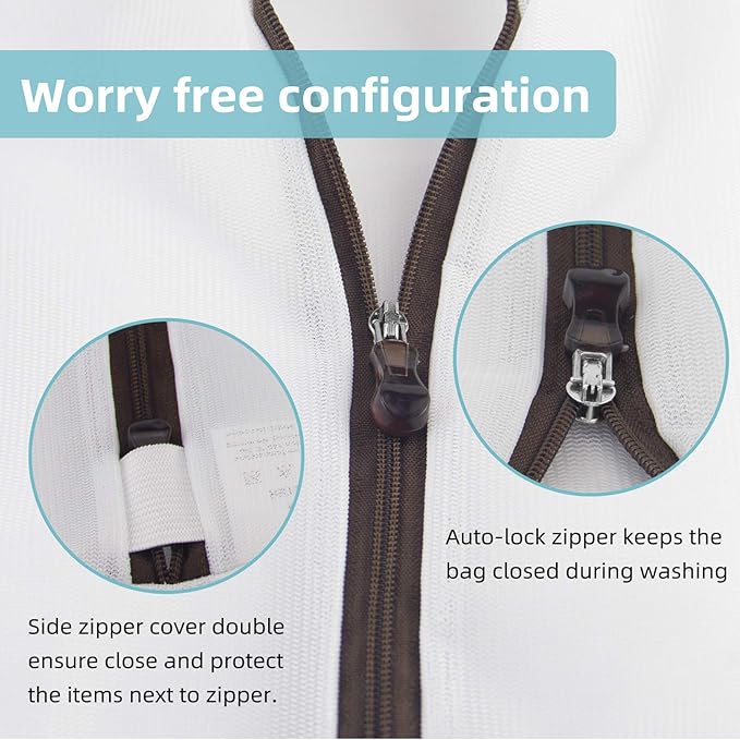 - Our upgrade anti-rust zipper with auto lock and side zipper protection band will prevent the bag from opening during washing and drying cycle. Youโll have a new quiet and a snag-free laundry experience