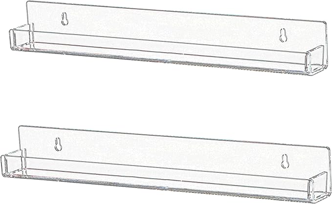 - SIZE:15x1.6x2(LxWxH)inch/each,5mm thickness.The inner diameter of the acrylic shelf is 1.25"(Please confirm that the bottle diameter is not greater than 1.25" before purchase)package include 2 pieces of acrylic wall book shelf and install hardware,if use it as nail polish organizer,holds up to 30 bottles of nail polish (actual number may vary based on size and shape of bottles),each wall floating shelf is individual,It can be installed in a row or separately according to your preference.