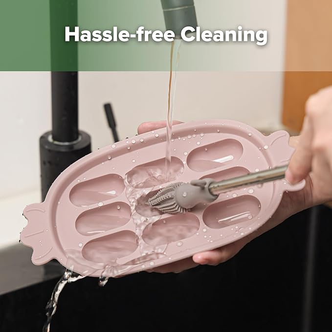 - Easy Pop-out and Clean -The silicone liner ensures a seamless pop-out of frozen portions.Safe in dishwashers, microwaves and boiling water.