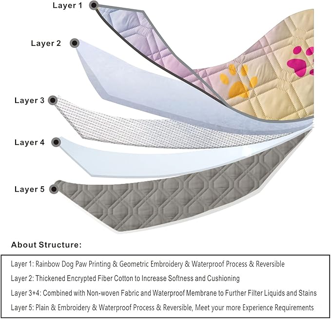 100% Waterproof Dog Bed Cover 102x82 in Reversible Changing Pad Reusable Camping Mat for Kids/Pet/Dog/Cat Washable Geometric Embroidery Blanket Patchwork Rainbow Dog Paw Printed+Gray