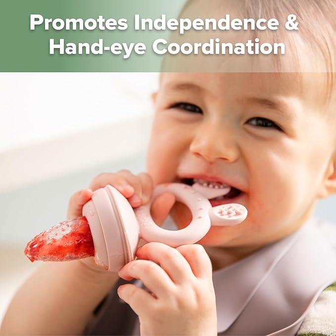 - PROMOTES INDEPENDENT FEEDING: Designed with an easy-to-hold ring suitable for tiny hands, our Feeder fosters self-feeding skills and enhances hand-eye coordination.