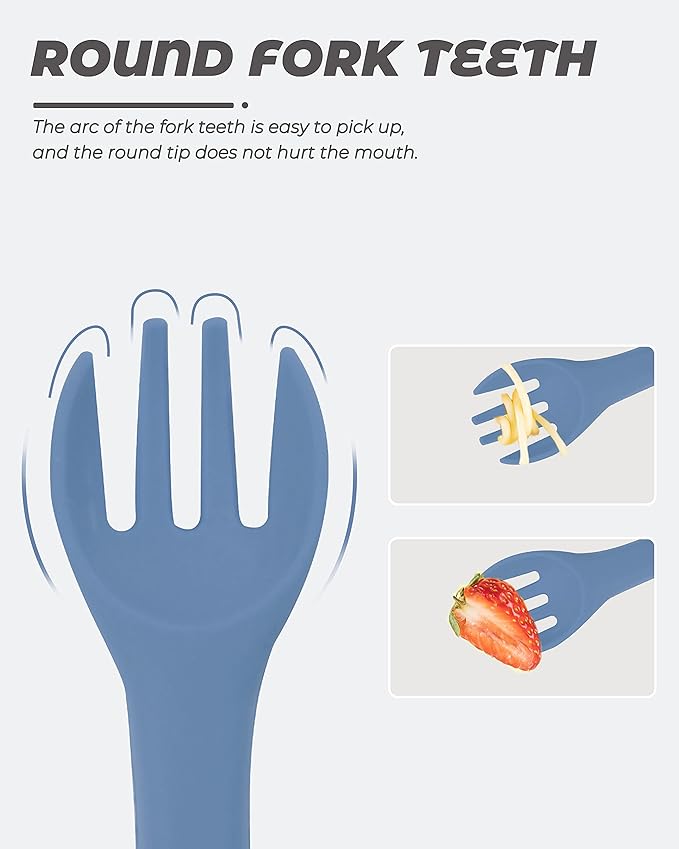 - SAFE DESIGN: The baby utensils for self-feeding are designed with a round smooth handle, which is safe to hold, will not hurt children's lips and hands, and is also safe for babies to feed themselves.