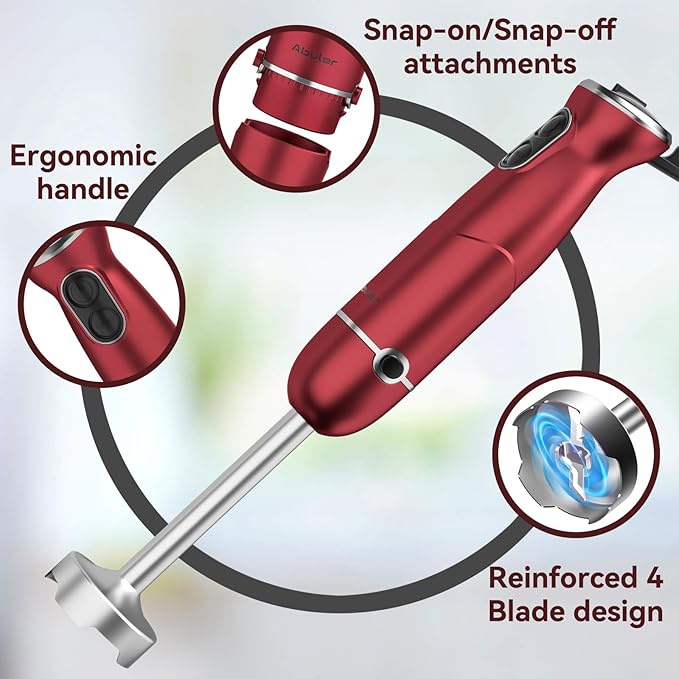 - POWERFUL IMMERSION BLENDER HANDHELD: Abuler handheld blender (batidora de mano electrica) features a powerful awesome 1000-watt blending power and turbo boost mode, which would be a time saver when making soups, sauces, homemade salad dressings for meal prep or making smoothies and milkshakes with healthy natural raw ingredients.