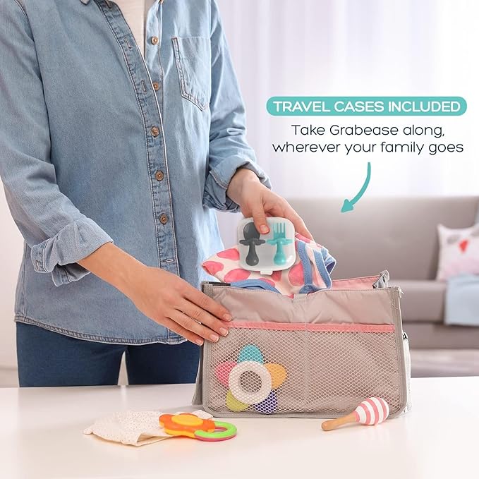 - Thoughtful Gift Selection: These ergonomic baby feeding essentials are endorsed by experts, making them a thoughtful choice for new parents. Grabease silicone baby utensils, including baby spoon forks, combine innovative safety features with practical design