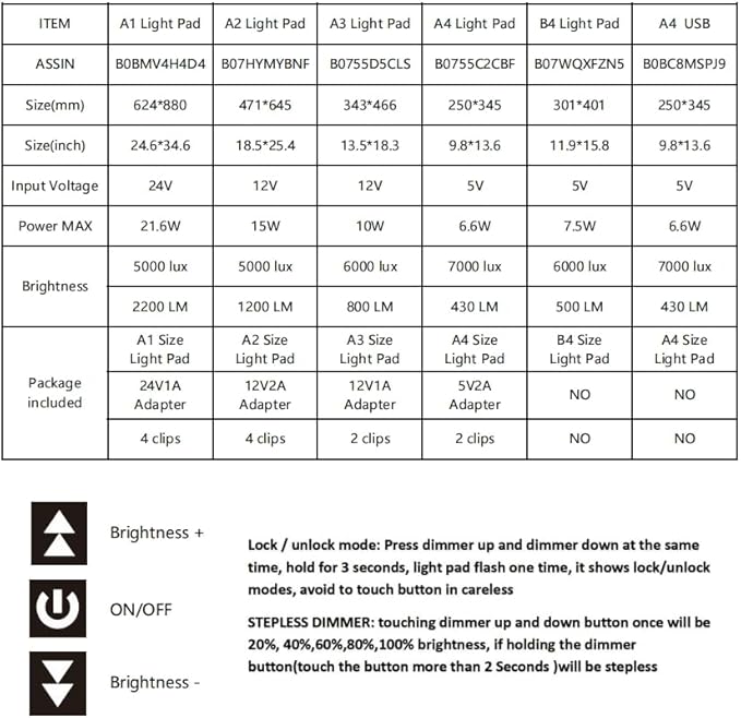 - Innovative Design -- Lock Button Avoid to Touch the button in Careless when Drawing or Diamond painting, Press dimmer up and dimmer down at the same time, hold for 3 seconds, light pad flash one time, it shows lock/unlock modes