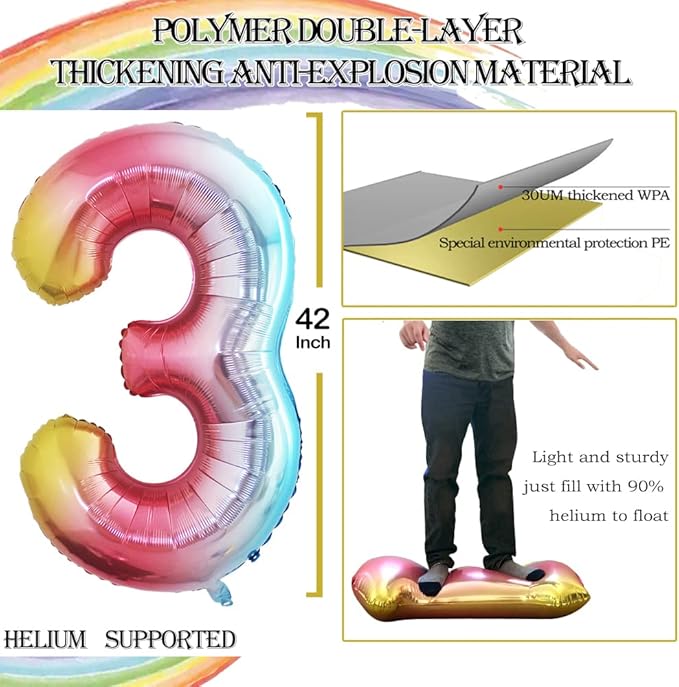 - Package Includes:Number 3 and 0 Balloons,1 Inflatable Straw,315 Inch Ribbon