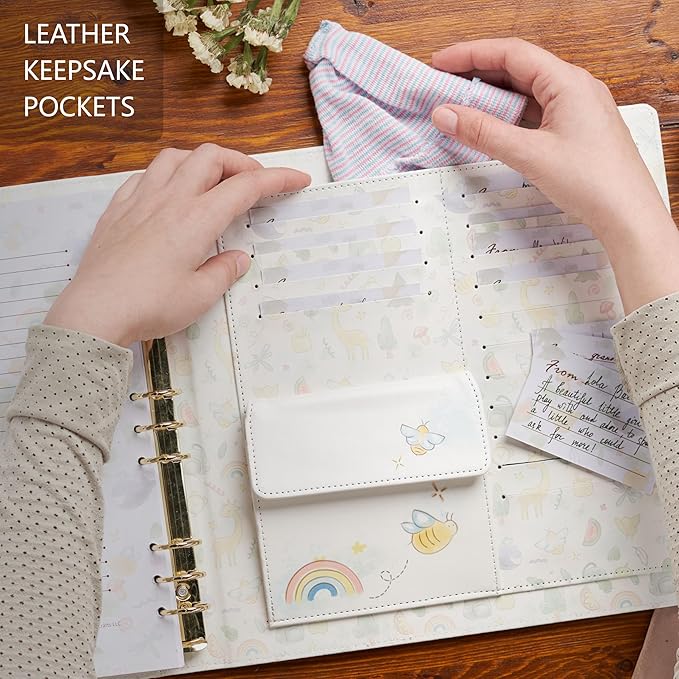 - Leather Surface, Exceptional Quality β The baby journal memory book cover and outer surface of the baby keepsake storage box are made of faux leather of exceptional quality and durability. The interior of the baby keepsake box is upholstered in an elegant gentle turquoise flannel fabric. Beautiful baby album and memory book set and a shower gift for girls and boys.