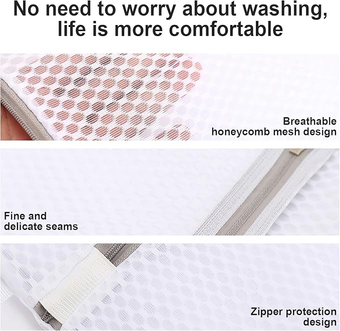 - 【Breathable mesh design】 The mesh washing bag is made of durable polyester. The regular honeycomb mesh makes the flow of water and washing smoother and can be cleaned by rubbing against clothes. It can protect your clothes well without affecting the washing of the clothes.