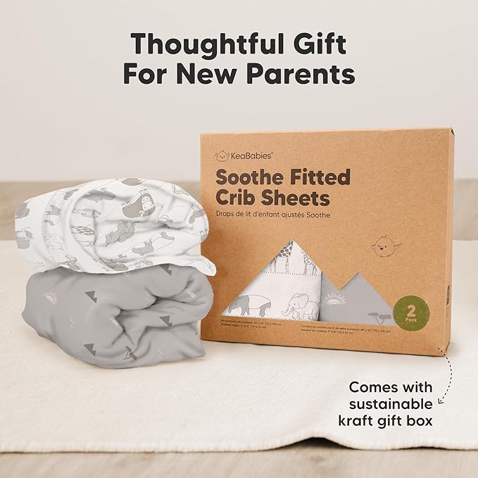 - 2-Pack Baby Crib Sheets - KeaBabies Soothe Fitted Crib Sheets for boys and girls; fit standard crib mattresses (52"x28" with height 3" to 8") perfectly, offering your baby a safe and restful sleep.