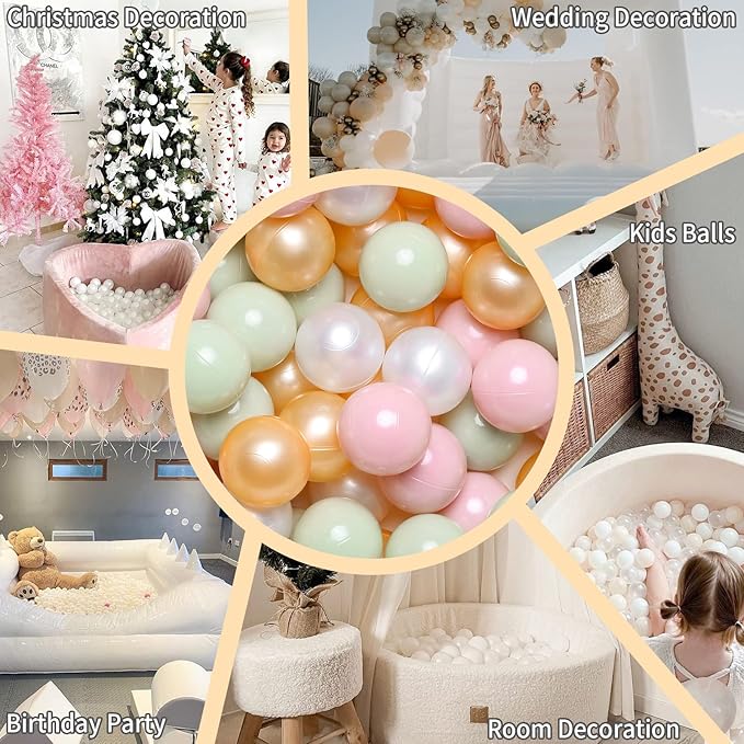 - Multipurpose Entertainment: Elevate playtime in any setting โ ball pits,party decoration, diy giant frienship bracelet banner, play tents, playhouses, baby swimming pools, playpens, and bounce houses. Versatile for baby or toddler ball pits, indoor playpen parties, bath time, and even Christmas tree decoration. With smooth edges, and an easy-to-clean design, these plastic balls bring fresh fun every day.