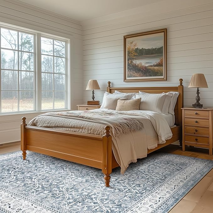 jinchan Floral 6x9 Area Rugs for Living Room - Machine Washable Vintage Distressed Boho Design Throw Rug Stain Resistant Carpet Low-Pile Thin Non-Slip for Bedroom Dining Room Nursery (6‘x9',Grey)