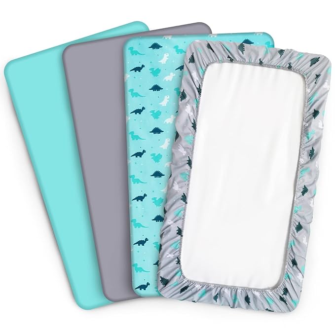 Graco Pack n Play Sheets - 4 Pack Mini Crib Sheets, Ultra Soft Mattress Compatible, Dinosaurs