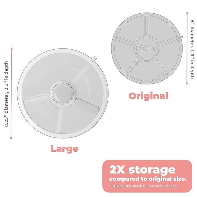 - MORE THAN A SNACK CONTAINER - Snack spinner is 8.5 inches in diameter and 2.1" deep, making it perfect for lunch size portions. Interactive button keeps kids engaged and assists with fine and gross motor skills as they choose snacks independently.