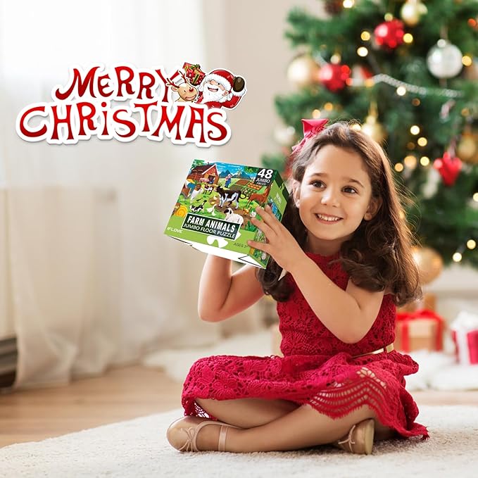 Jumbo Floor Puzzle for Kids,Farm Animals Jigsaw Large Puzzles,48 Piece Barn Puzzle for Toddler Ages 3-5,Children Learning Preschool Educational Toys,Birthday Gift for 4-8 Years Old Boy and Girl