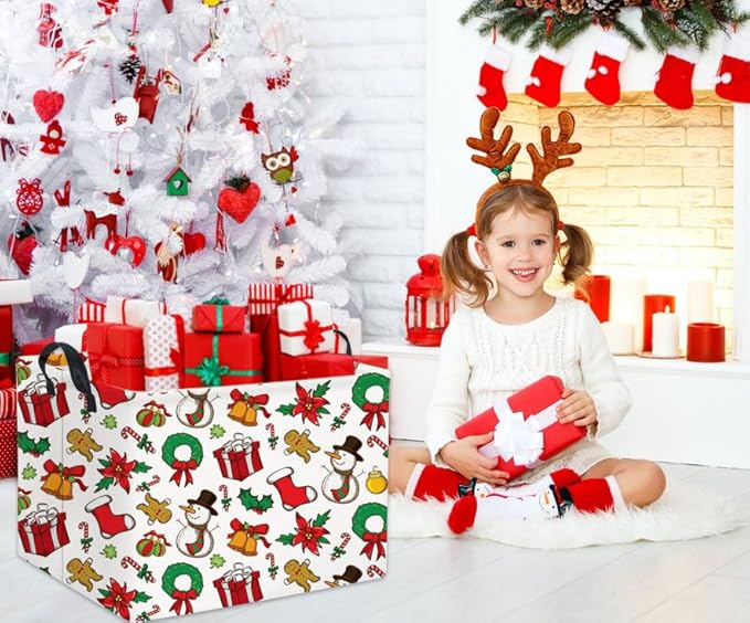 HIYAGON Rectangular Basket for Families Basket with Baby Storage Bin and Kids Toy Organizer Box for Boy and Girls - Christmas Room Decor