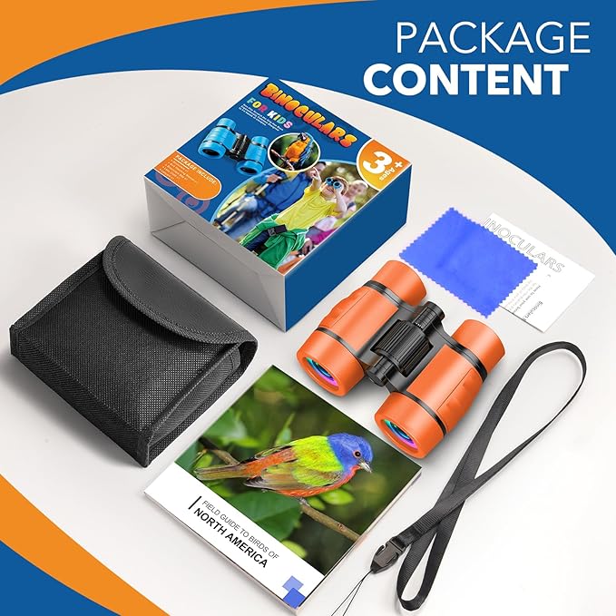 - Adventure Accessories: This fun binoculars is a perfect tool for your kid's outdoor adventure! Package Includs 1x 4x30 Binoculars, 1x Bird Watching Manual, 1x Carrying Canvas Bag, 1x Neck Strap, 1x Lens Wiping Cloth