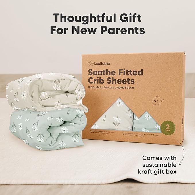 - 2-Pack Baby Crib Sheets - KeaBabies Soothe Fitted Crib Sheets for boys and girls; fit standard crib mattresses (52"x28" with height 3" to 8") perfectly, offering your baby a safe and restful sleep.
