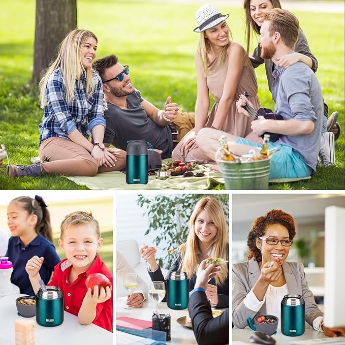 - 【Superior Vacuum Insulation】Keeping your soup hot, it can be an easy thing!!! Durable insulated thermal technology maintains temperatures for longer, interior is constructed entirely of food-grade stainless steel, keeping food hot up to 12 hours or cold for 24. Whether in school or in the office, you can always enjoy hot food and soup during lunch time! It is suitable for babies, toddlers, children, girls, boys, adults and the elderly, perfect for school, office, travel, camping, gym, home.