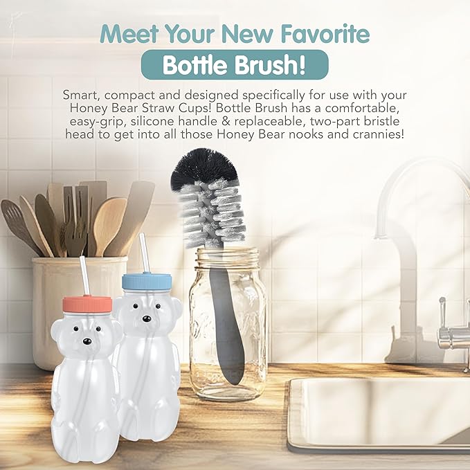- Complete Set: Our easy squeeze straw cups set comes with 2 bottles + lids, 4 straws, a custom bottle brush, & a straw cleaner. These BPA-free & recyclable honey bear bottles with straws are leak-resistant, dishwasher-safe, & easy to clean & maintain.