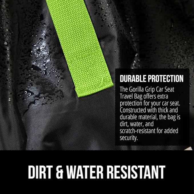 - DURABLE PROTECTION FOR YOUR CAR SEAT: a must for traveling, the Gorilla Grip Car Seat Travel Bag is designed to help protect your car seat while you travel; bag is water, tear and dirt resistant; features drawstring closure that tightly closes around the car seat, helping to protect from dirt, grime and moisture; bag is made of lightweight, yet durable material that can be machine washedโ