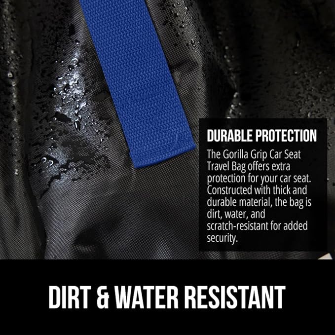 - DURABLE PROTECTION FOR YOUR CAR SEAT: a must for traveling, the Gorilla Grip Car Seat Travel Bag is designed to help protect your car seat while you travel; bag is water, tear and dirt resistant; features drawstring closure that tightly closes around the car seat, helping to protect from dirt, grime and moisture; bag is made of lightweight, yet durable material that can be machine washedโ