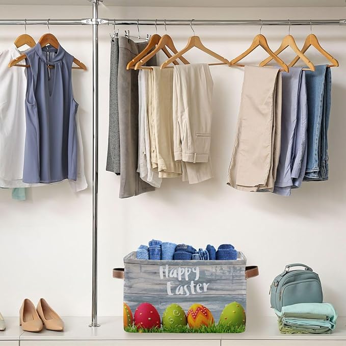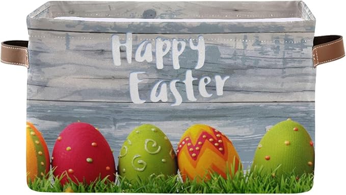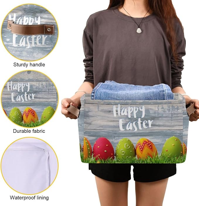 Happy Easter Eggs Storage Basket Cube Storage Bins Organizer Bag Collapsible Closet Shelf Baskets with handle for Baby Cloth Pet Toy Book 14.2×10.2×8.3 IN