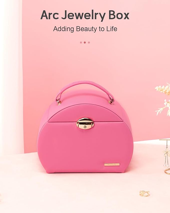 - LOVELY LOOK: Made of Pu leather and soft velvet lining, this pink jewelry box is attractive and lovely, perfect gift for your beloved one.