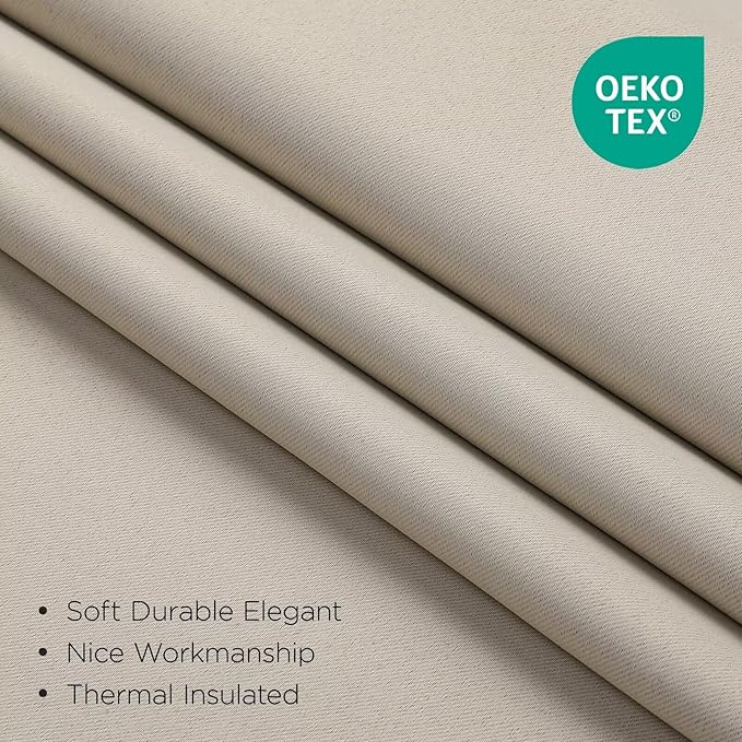 Joydeco 90 Inch Blackout Curtains for Bedroom, Thermal Insulated Black Out Curtains 2 Panels Set, Room Darkening Drapes for Living Room Window Rod Pocket Back Tab (W37 x L90 Inch, Light Beige)