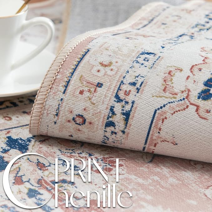 jinchan Long Hallway Runner Rug 2x12 Machine Washable Runner Rug Pink Vintage Floral Design Non-Slip Ultra-Thin for Kitchen Laundry Room Bedroom Farmhouse (2‘x12',Pink)
