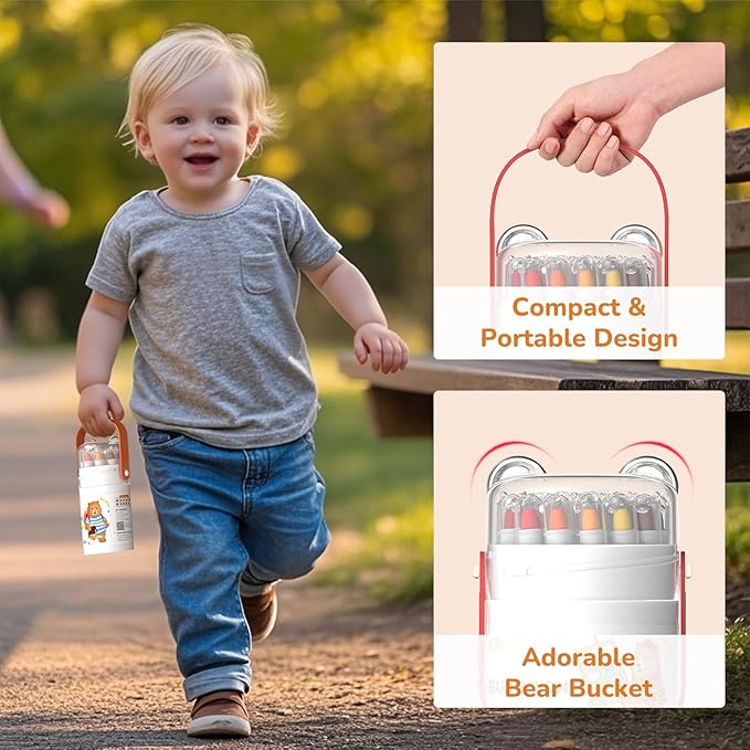 - Non-Toxic & Washable Crayons: Crafted with safe, odorless ingredients and meeting EN-71-3 and ASTM D-4236 standards, these crayons are perfect for kids ages 1-4. They’re designed for easy cleanup—just wipe away any marks from skin, furniture, or clothes—so your child’s creativity can flow without limits or mess (Tips: If it gets too messy, just use a mild detergent to clean it easily.)