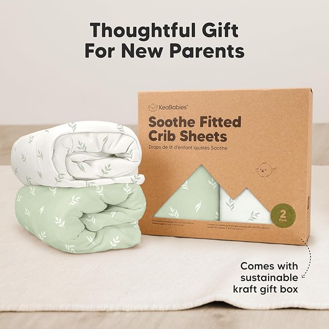 - 2-Pack Baby Crib Sheets - KeaBabies Soothe Fitted Crib Sheets for boys and girls; fit standard crib mattresses (52"x28" with height 3" to 8") perfectly, offering your baby a safe and restful sleep.