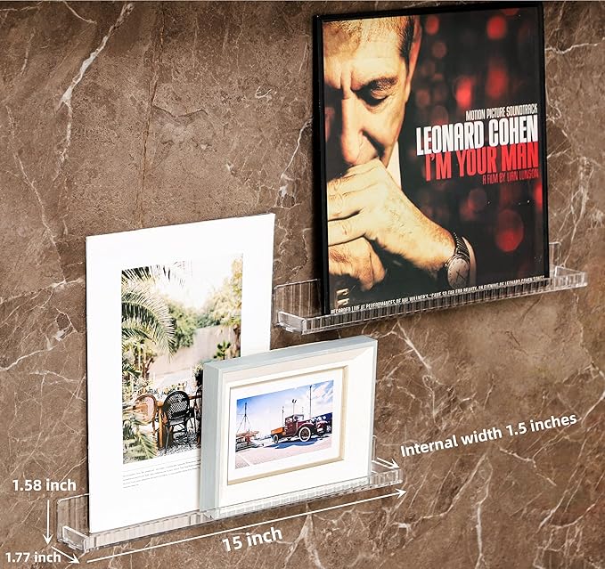 - SIZE:15x1.77x1.58(LxWxH)inch/each,5mm thickness.The inner diameter of the acrylic shelf is 1.5"(Please confirm that the bottle diameter is not greater than 1.5" before purchase)package include 6 pieces of acrylic wall book shelf and install hardware,if use it as nail polish organizer,holds up to 66-90 bottles of nail polish (actual number may vary based on size and shape of bottles),each wall floating shelf is individual,It can be installed in a row or separately according to your preference