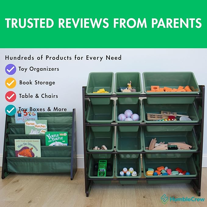 Humble Crew Kids Toy Storage Organizer with 12 Plastic Bins, Camo – Removable Bins for Playroom, Bedroom, Toddler Furniture for Boys and Girls Ages