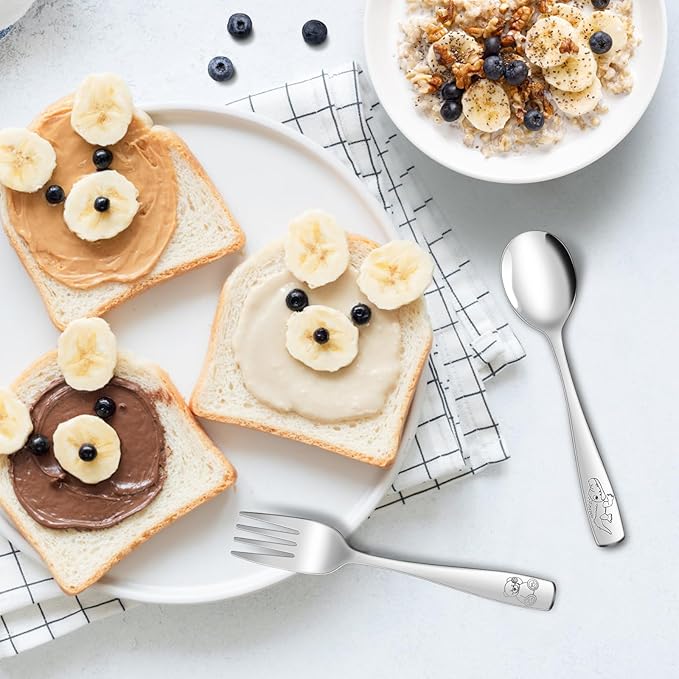 - PREMIUM STAINLESS STEEL KIDS HARDWARE: Great silver wear for kids, and great size for younger children and good quality. Made of high quality stainless steel that is completely safe and non-toxic for children's food, they will not rust or corrode. You donβt have to worry about kids breaking them as they have other toddler utensils. Dishwasher cleans them fantastically.