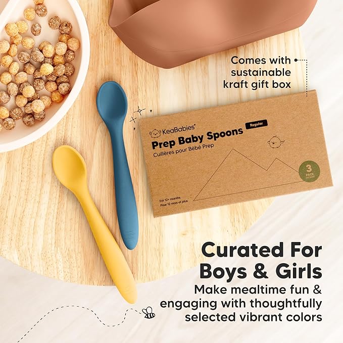 - Safer Silicone - KeaBabies 3-Pack Prep Silicone Baby Spoons Set is made from 100% food-grade, BPA-free silicone. With a topple-free handle and comfort sized scoop, these toddler spoons help BLW toddlers build confidence as they learn self-feeding.