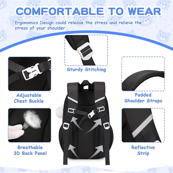 - Comfortable and Breathable: This girls boys school bag features ergonomical design, adopted with a breathable and thickened sponge of the padded shoulder strap and back panel, this cute backpack make the girls comfortable to wear, relaxing their shoulder and reducing pressure, the reflective strip on it could remind the passing vehicles to avoid