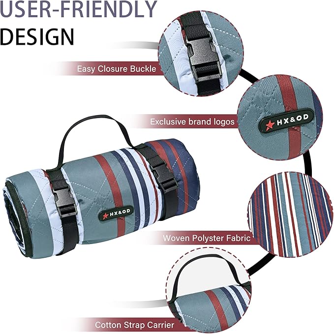 - ☀ 【Waterproof & Machine Washable】Outdoor picnic blanket is super easy to clean due to its durable and waterproof backing, easily shake & wipe off dirt, mud, wet grass, and beach sand. And you could put it into washing machine to save your time and free both hands.