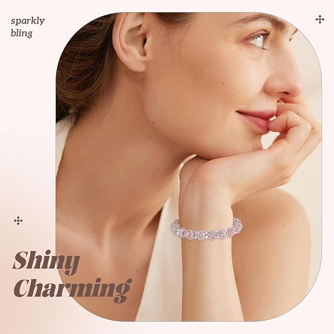 105pcs 10mm Rhinestone Beads for Jewelry Making, Pink White Shiny Round Disco Ball Beads Bulk, Sparkle Crystal Clay Christmas for Bracelet Baseball Necklace Earring Crafting and DIY