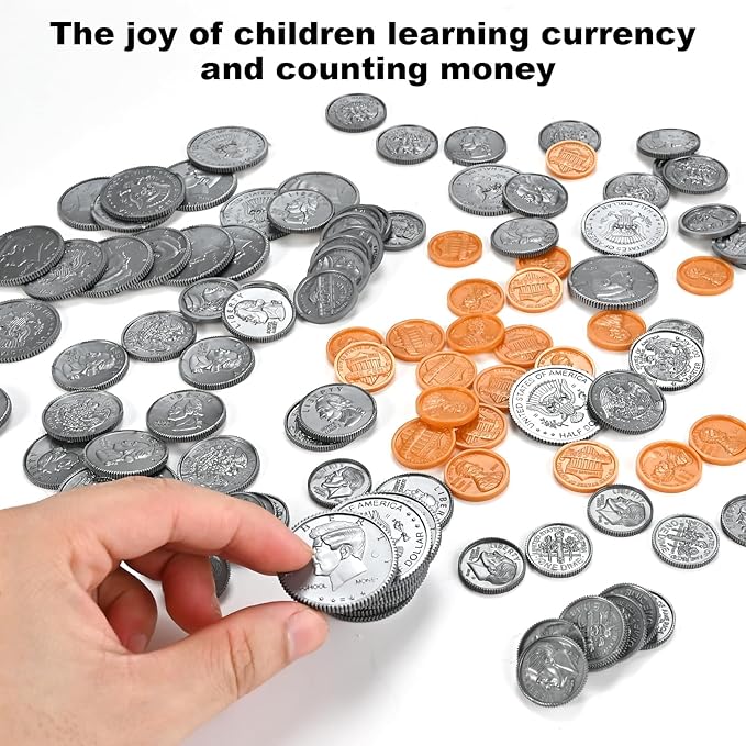 - 【High-Quality, Safe, and Durable】: Made from non-toxic, eco-friendly materials, our toys for children are designed to last. The double-layer paper is sturdy and tear-resistant while the plastic coins are identical in size and reusable. The vividly printed patterns are clear and won't fade, providing children with a safe and enjoyable play experience.