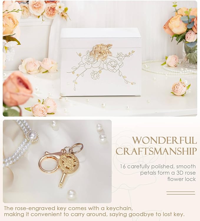 - Secure Storage with Elegant Leather: A jewelry box that locks, keeping your treasures secure with a rose lock and beautiful faux leather that adds a touch of luxury to any room.