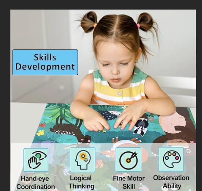 - 【Skills Development】Perfect educational learning tool to boost conducive to abilities improvement of spatial imagination, patience and analysis. utting together puzzles can also helps kids focus their minds and inspires brain thinking ability. Kids do puzzles with other partners, communication and collaborative skills are also improved.