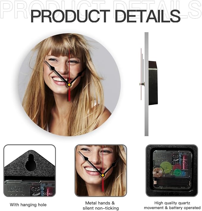 - 【Personalized pictures clocks】Please click the“customize now“button at upper,upload your customized photo and add text.Stretch photo to fill the entire printing area.Submit high definition images for better print results.