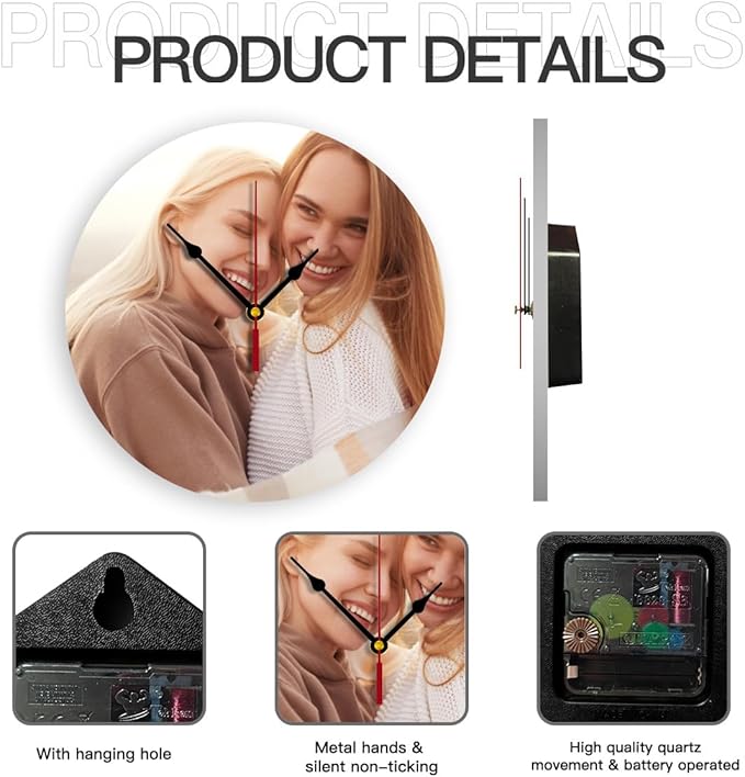 - 【As a gift】You can surprise your loved one with a custom photo clock,and a custom wall clock can save your life memories.Our customized wall clocks are perfect gift ideas for christmas,birthdays,weddings,valentine's day,anniversaries or any other occasions.