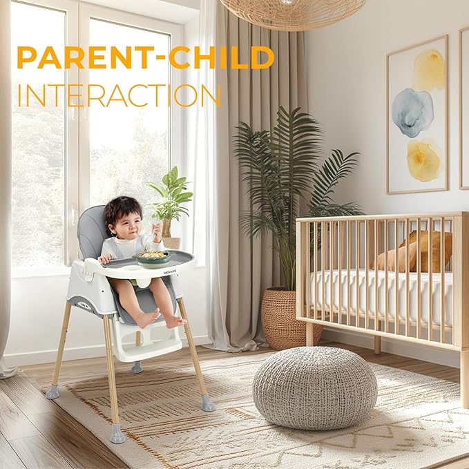 - Multiple Safety Protections: Sturdy steel tubes and a golden triangle design prevent tipping. The adjustable 5 point harness high chair ensures your babyβs safety, making this highchair a top choice for parents.