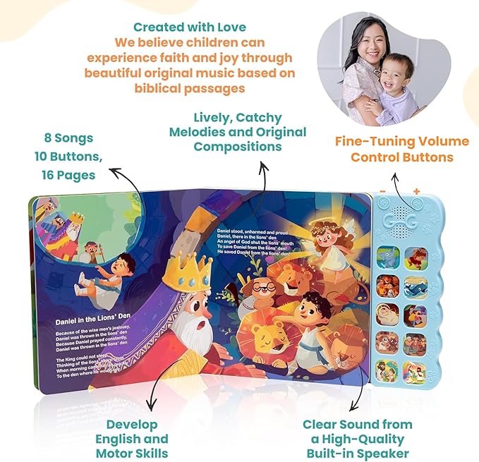 - Inspires Faith and Family Bonding: Enjoy 10 sing-along kids Christian songs like "My God is So Big" and "The Good Samaritan." This Christian baby toy creates meaningful moments that nurture trust in God and a love for Bible stories.